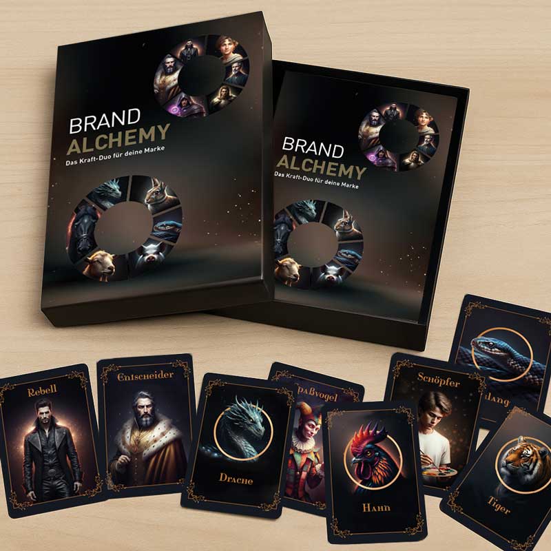 Box mit Booklet (52 Seiten) + Kartenset (24 Karten). Für Menschen, die mit Archetypen und BaZi ihre Marke spielerisch, praktisch, fundiert bauen wollen. Archetypen + BaZi = Dein kraftvoller Marken-Kompass.